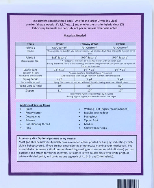 Contoured Golf Club Headcover Sewing Pattern - Downloadable